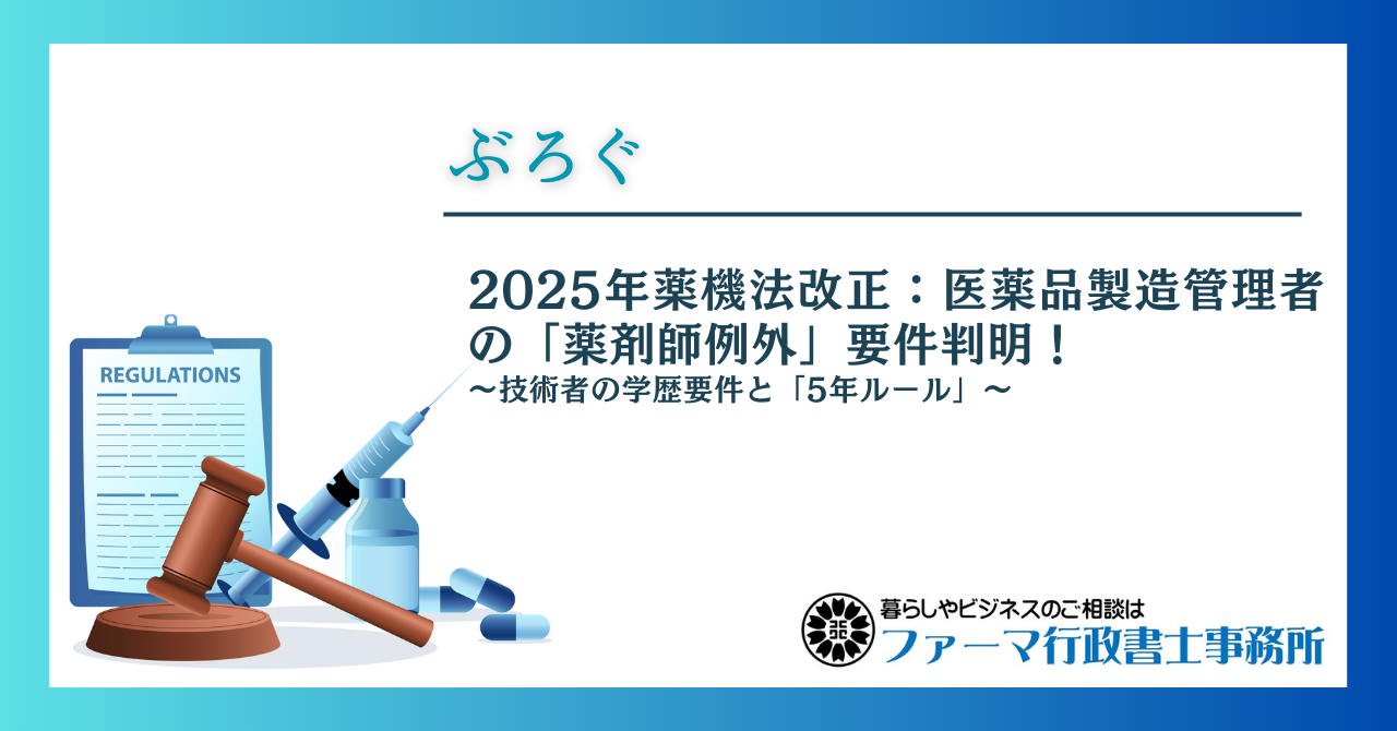 ブログ2025年12月27日ファーマ行政書士事務所ブログ(薬事13)