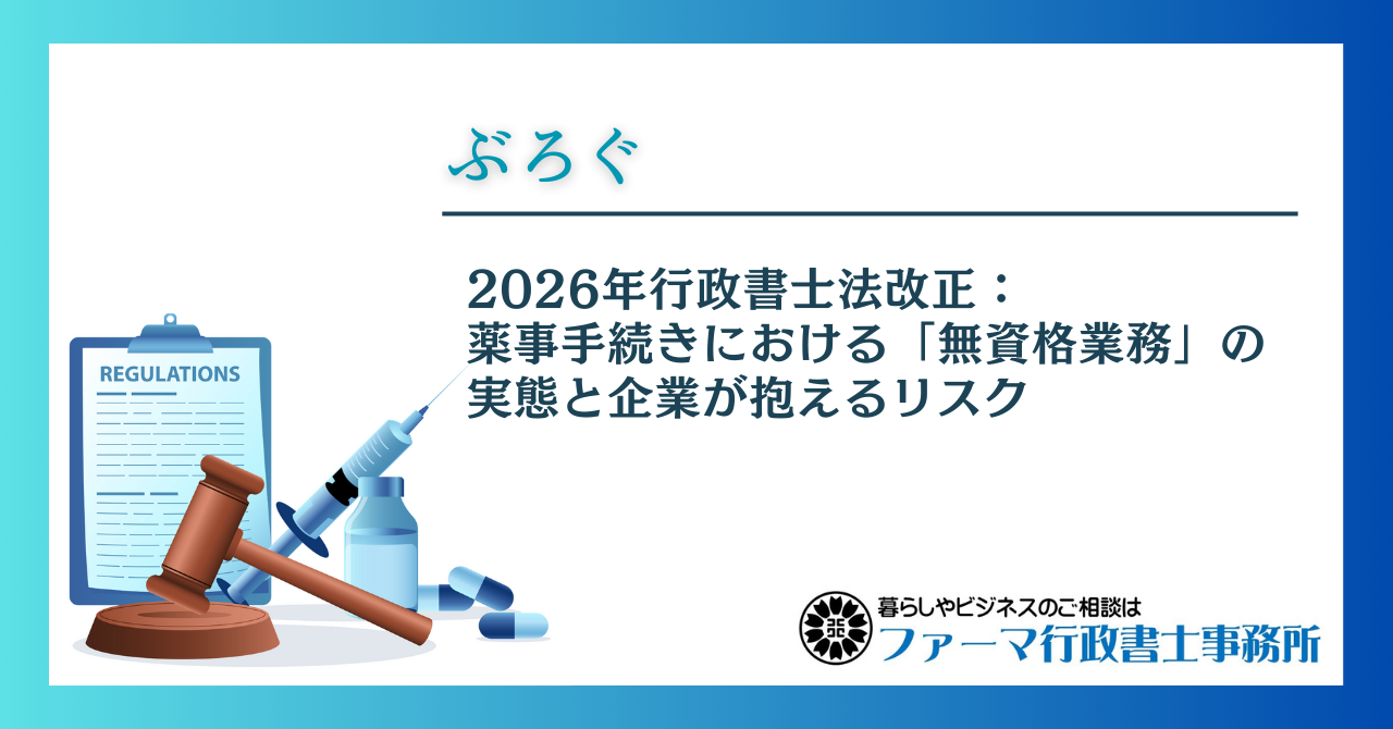 ※本記事は、2026年1月1日に施行された改正行政書士法の内容及びそれに関連する薬事実務への影響について記述しています。法解釈を含む内容については、個別の事案やその後の解釈等により異なる場合があります。正確な情報は必ずご自身でご確認いただくようお願いいたします。