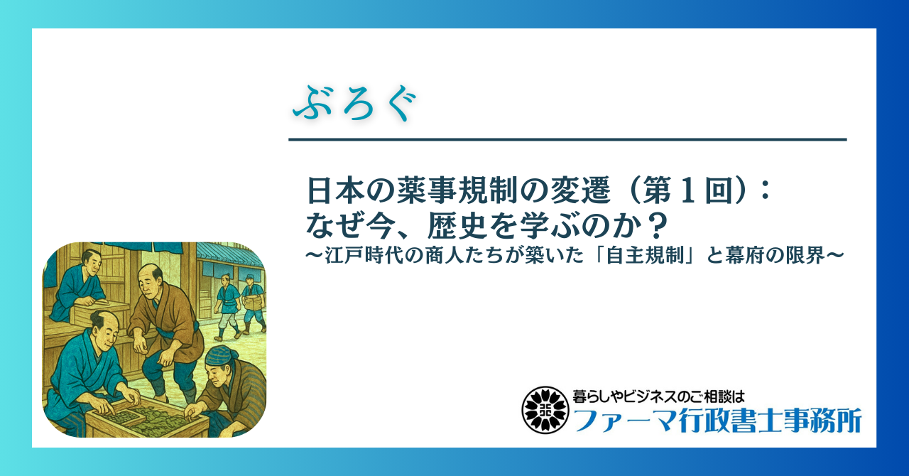 これまで当ブログでは、2025年(令和7年)5月21日に公布された「改正薬機法」のポイントについて、毎週テーマを変えて解説してまいりました。一連の改正内容について一区切りつきましたので、今回からは装いを新たに「日本の薬事規制の変遷」と題した新連載をスタートいたします。