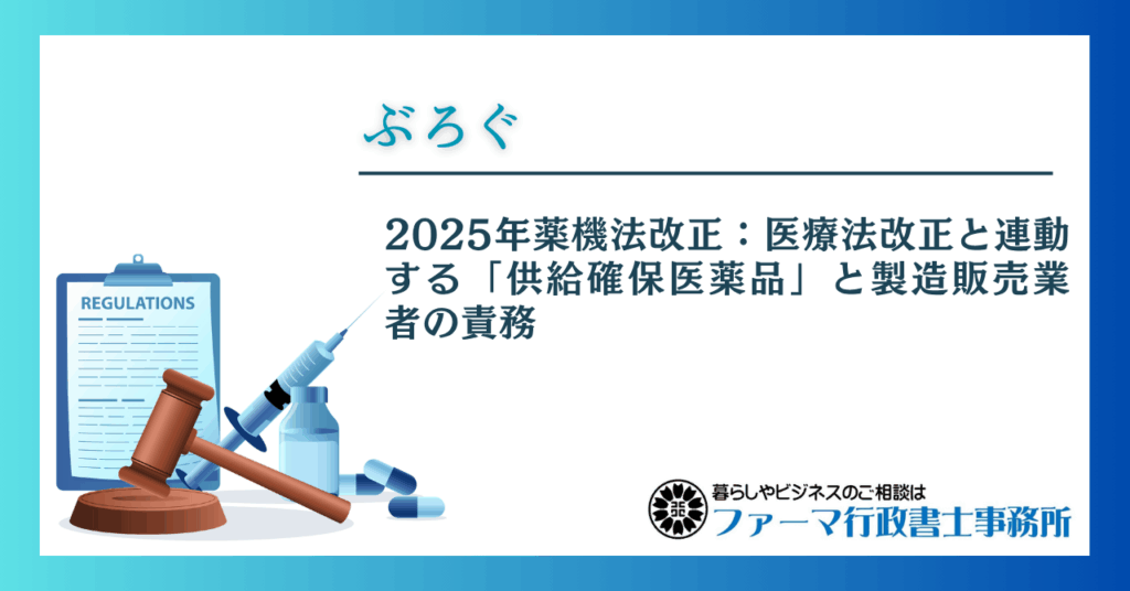 医薬品の供給は、もはや一企業の経営判断だけでなく、医療インフラ維持のための公的な責務としての側面が、法的に強く位置づけられたと言えます。
